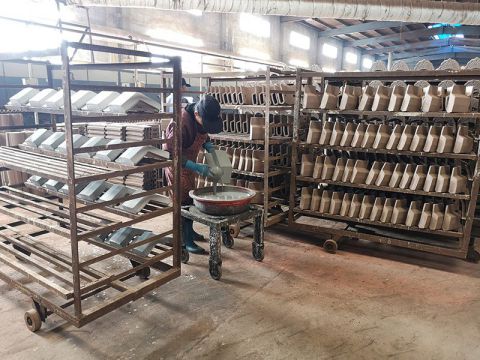 瓦廠生產(chǎn)車間 燒制中的筒瓦