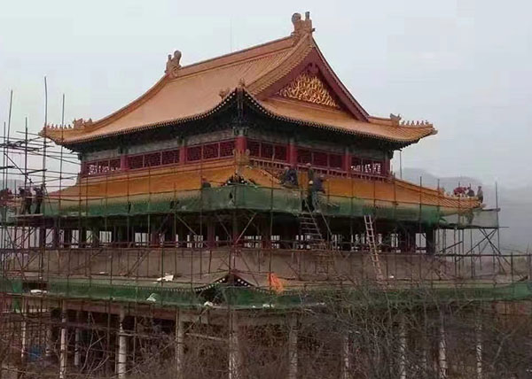施了金黃釉色的中式筒瓦,琉璃瓦廣泛應(yīng)用寺廟、園林、景區(qū)、樓閣,門樓等中式仿古建筑房屋面的裝飾。
