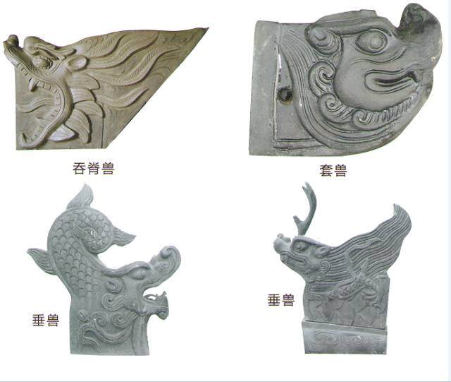 走獸又稱小獸,古代漢族宮殿建筑屋頂檐角所用裝飾物。根據(jù)建筑物的體量大小定其使用數(shù)量,一般采用單數(shù),太和殿用10個,屬于特例。其排列順序?yàn)辇?、鳳、獅子、天馬、海馬、押魚、狻猊、獬豸、斗牛、行什,多為有象征意義的傳說中的異獸。戧獸是古代漢族建筑戧脊上獸件,用于歇山頂和重檐建筑上。戧獸是獸頭形狀,將戧脊分為獸前和獸后,獸頭前方安放蹲獸,其作用和垂獸相同,起到固定屋脊的作用,同時也有嚴(yán)格的等級限制。套獸是中國古代漢族建筑的脊獸之一,安裝于仔角梁的端頭上,起作用是防止屋檐角遭到雨水侵蝕。
